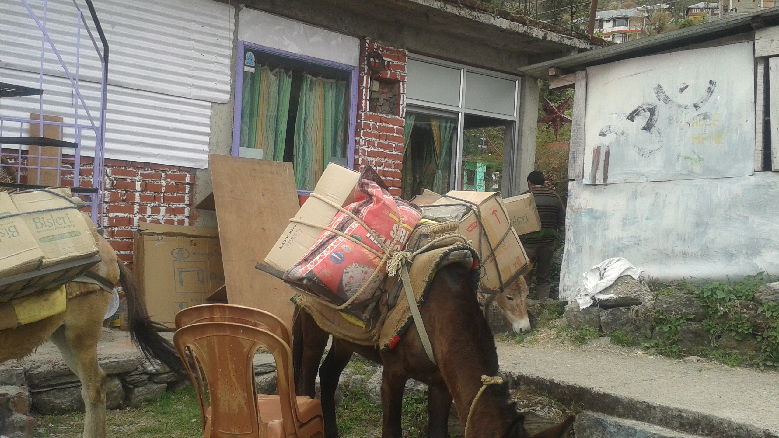 Restaurant supplies via horses… Now that you mention it, we did walk down a long narrow path to get here, guess cars just don’t work around here…