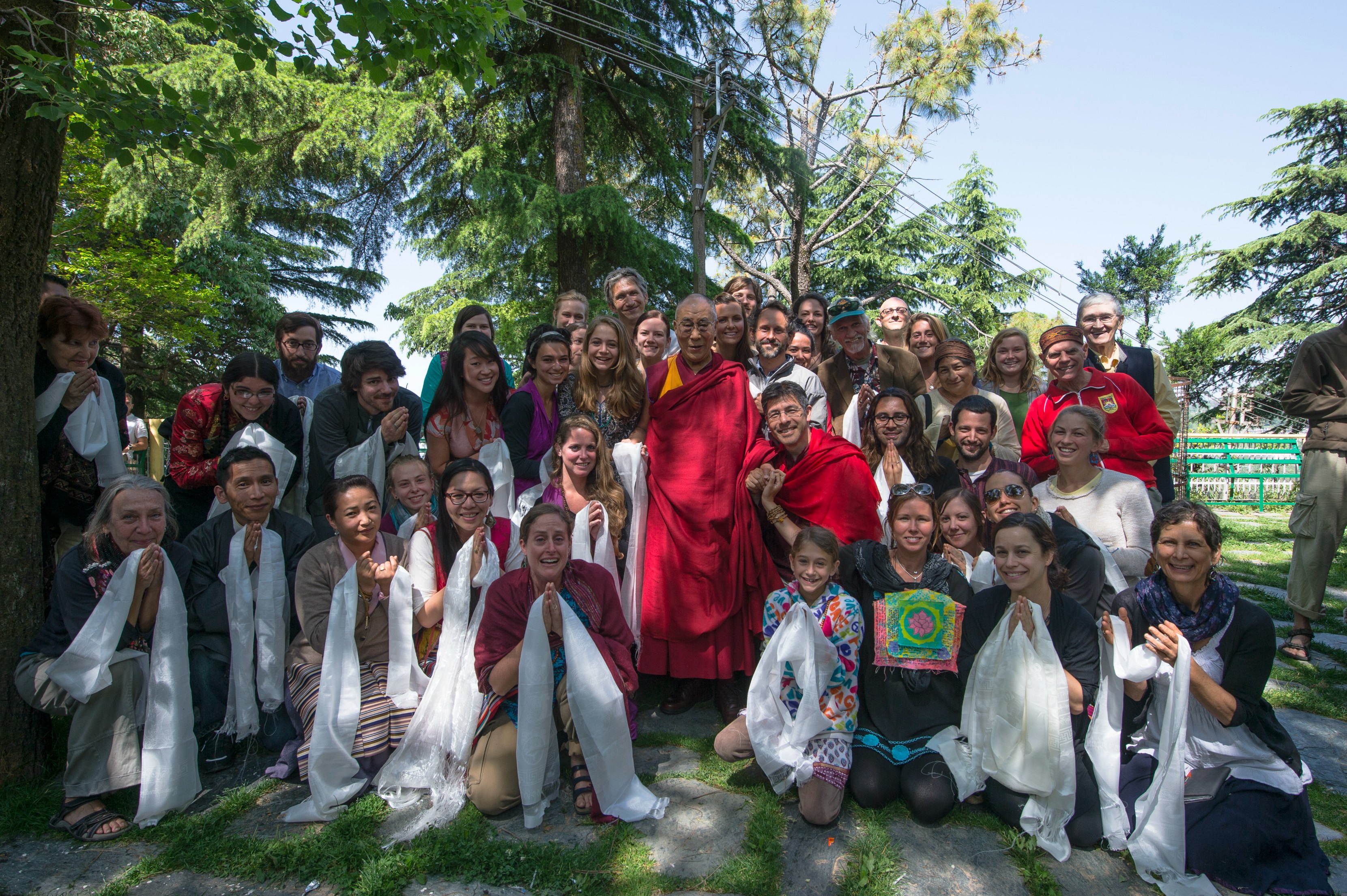 Group picture of Americans w/ Dalai Lama – Eric, myself and Sah are just to the left of HHDL… Eric and I held his hand… I made sure to bring my prayer flag so all of you who signed it would be blessed too!