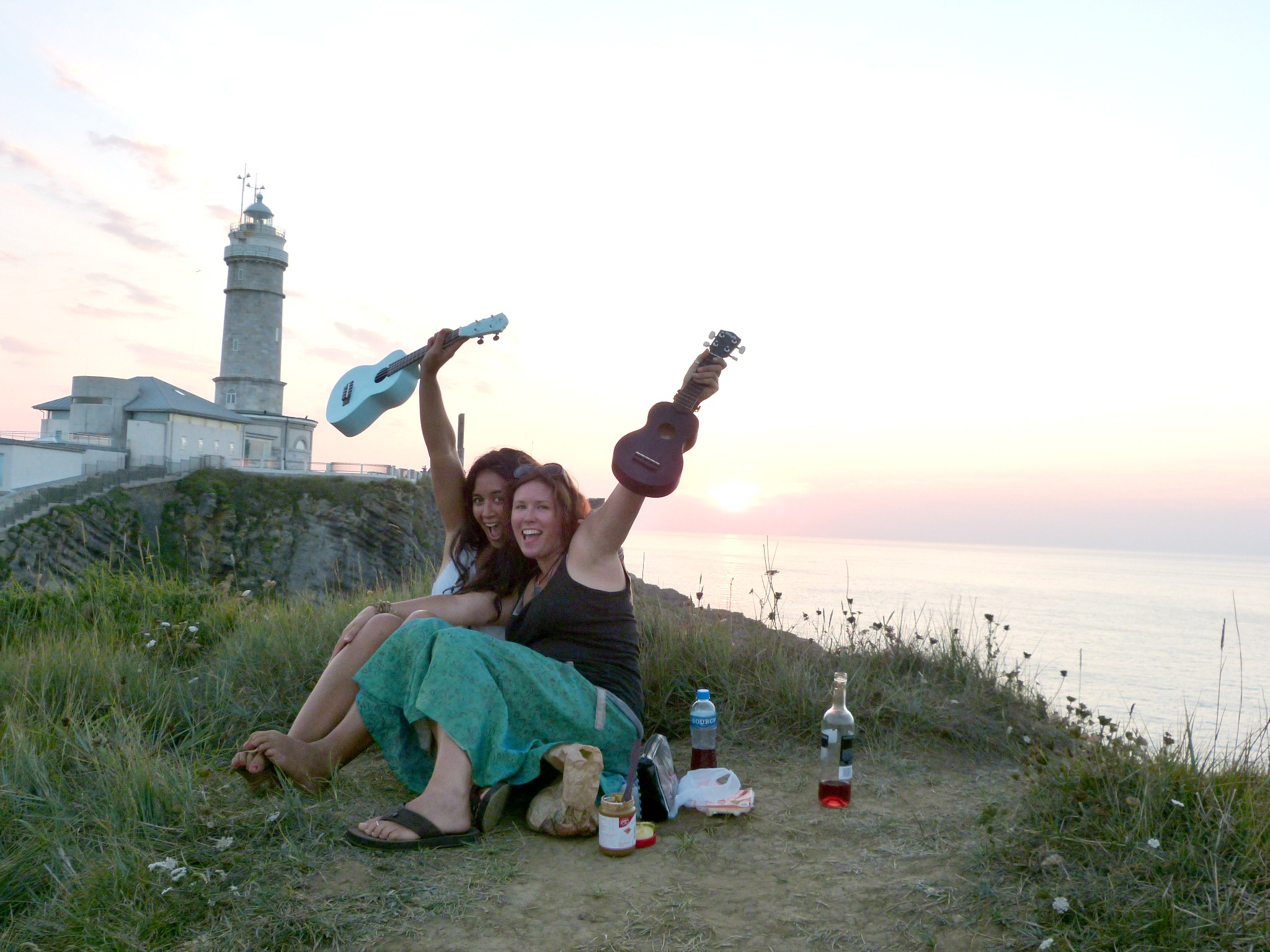 Now we’re settled all nicely in a camp site, ahhhhh that’s better, on the coast of Spain and back to singing kum-ba-ya around the camp fire… Actually, no, we’re not singing kum-ba-ya, we’re playing/singing “Somewhere over the Rainbow” on our ukulele’s… That’s right folks, we’re learning the ukulele and having a blast doing it!