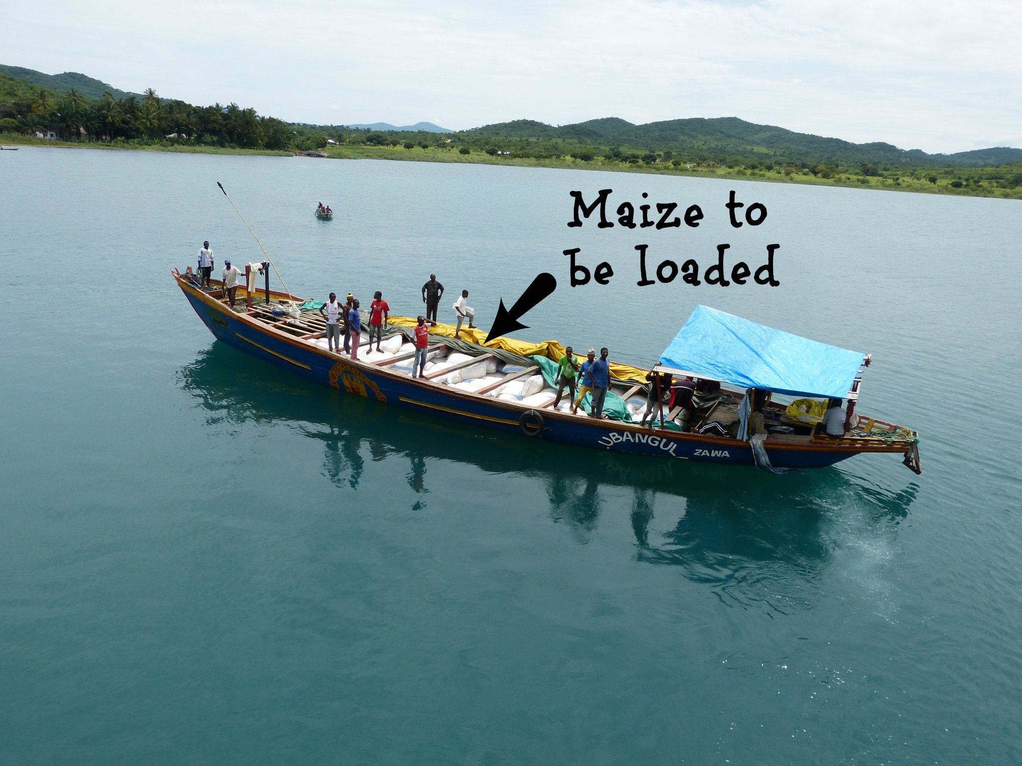It took 4 hours to load all the maize (white bags) from that boat onto the Liemba.