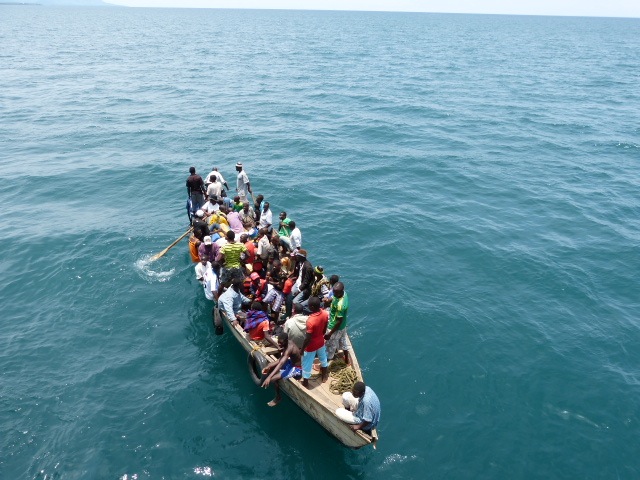 Boats come from the small towns on the coast to board the Liemba