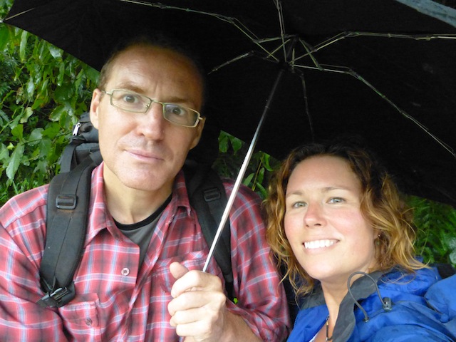 We hadn’t even made it back to the main trail yet and it started raining. Noooooo. Who hikes the CNT during rainy season? Ummm, apparently we do. We stopped and pulled out our rain gear. J had a raincoat and I had an umbrella. J calls his raincoat a cagoule, have you ever heard of such a thing? You British people crack me up. Sometimes, I swear we are speaking different languages! I can never remember the word cagoule, so I call it a Kigali, the capital of Rwanda. Anyway, J let me where the Kigali what a gentleman and he used the umbrella and we hovered under a tree while the rain poured down.