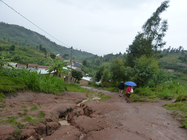 Ms. Anastasia made us a hearty breakfast, which we quickly consumed, saving the bread and bananas for our daytime snack. I stuck a few Band-Aids on my newly formed blisters and we were out the door and on our way up the steep hill leaving the town of Cyimbiri.