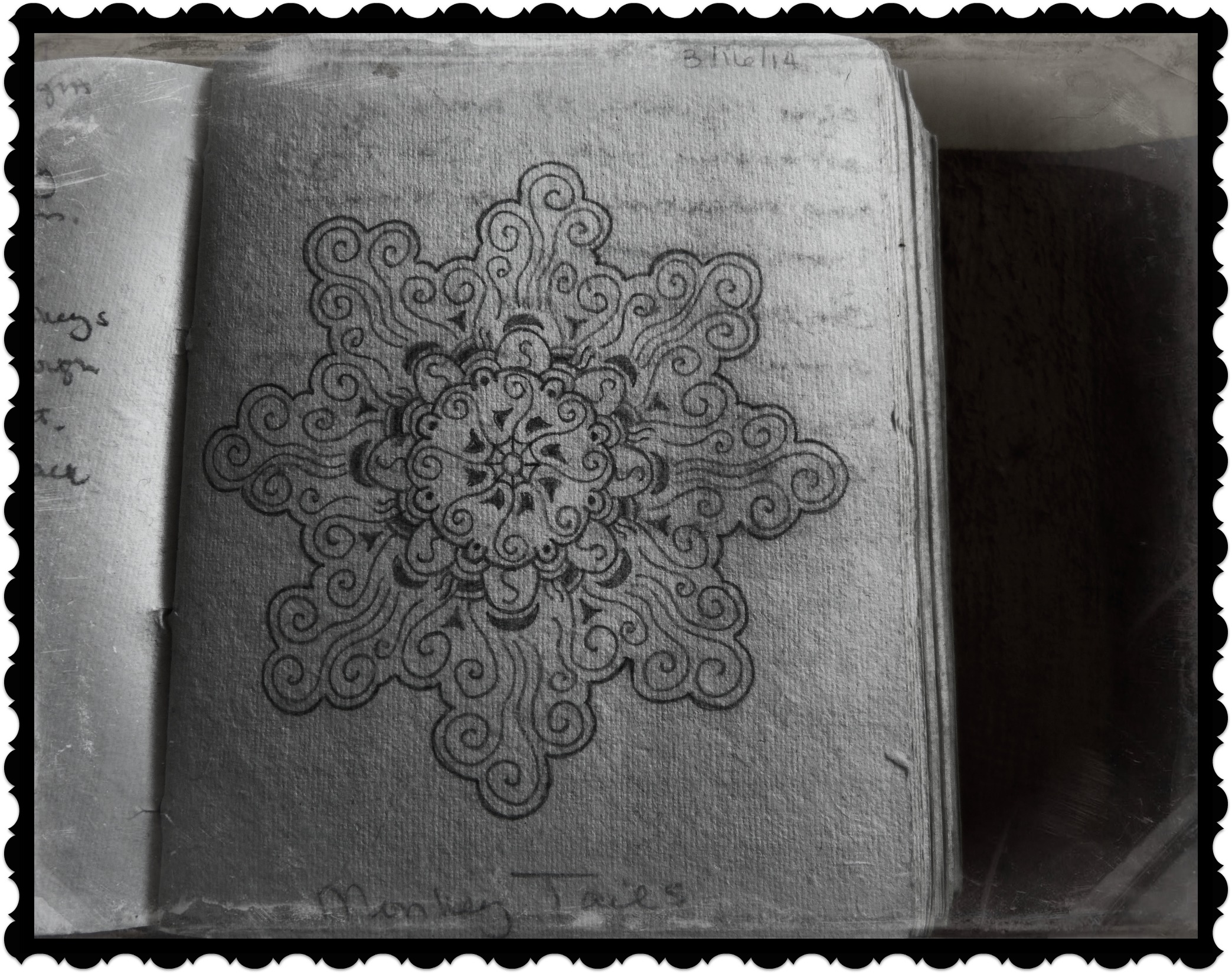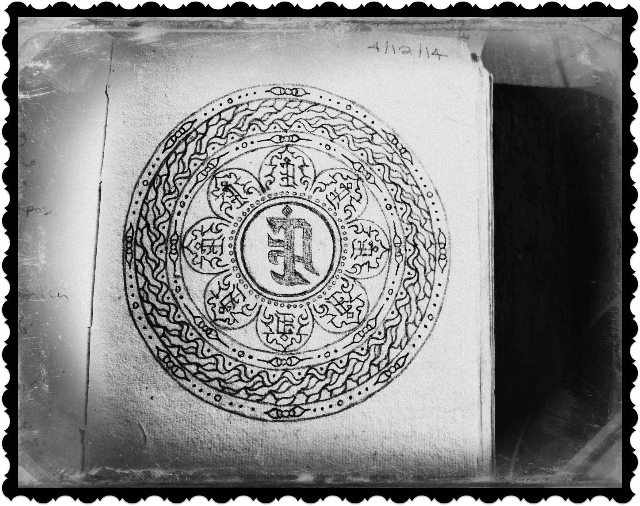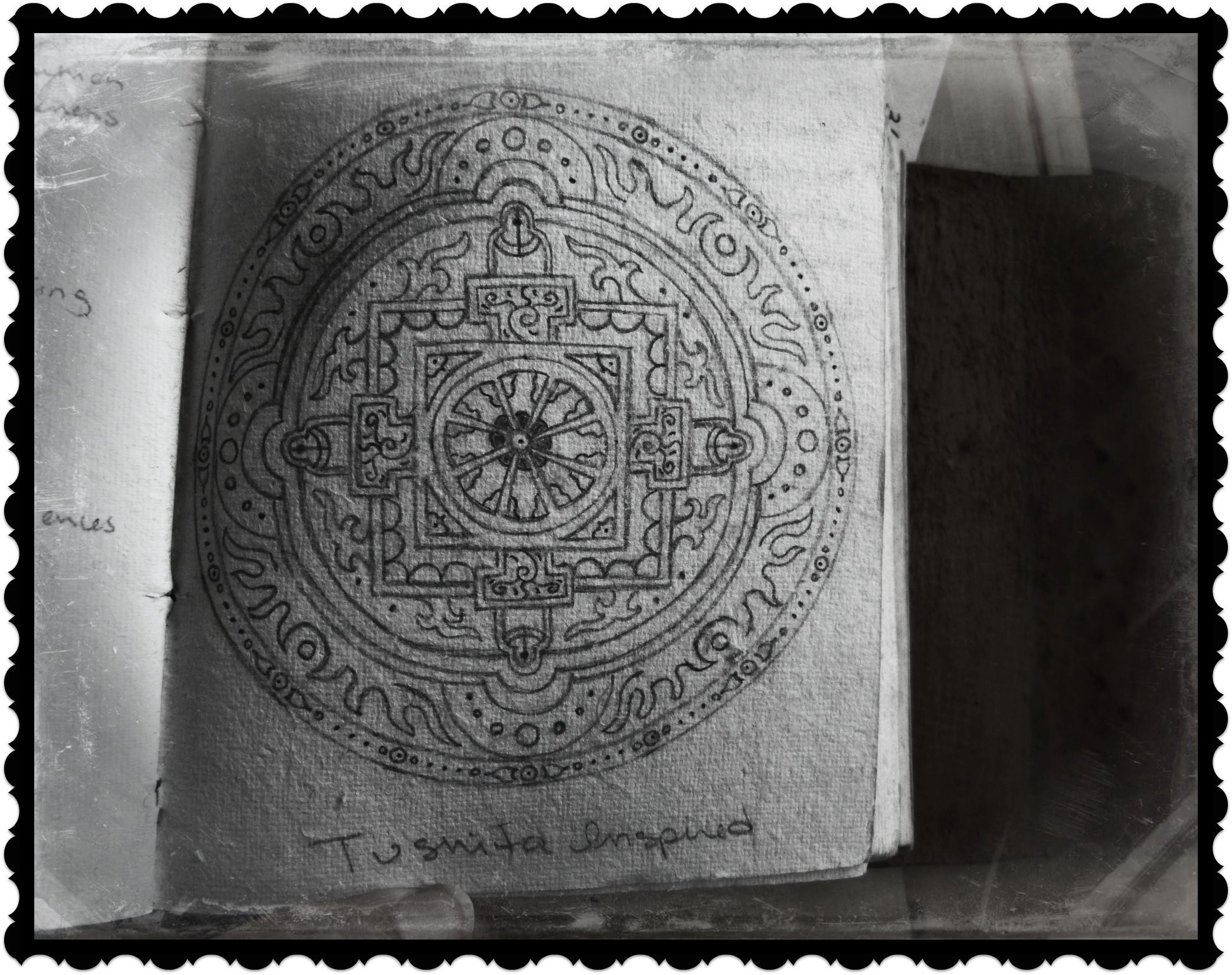 This was another mandala painted on the ceiling that inspired me to draw. Their Tibetan mandala was actually much larger, but this was all I could fit on the page…