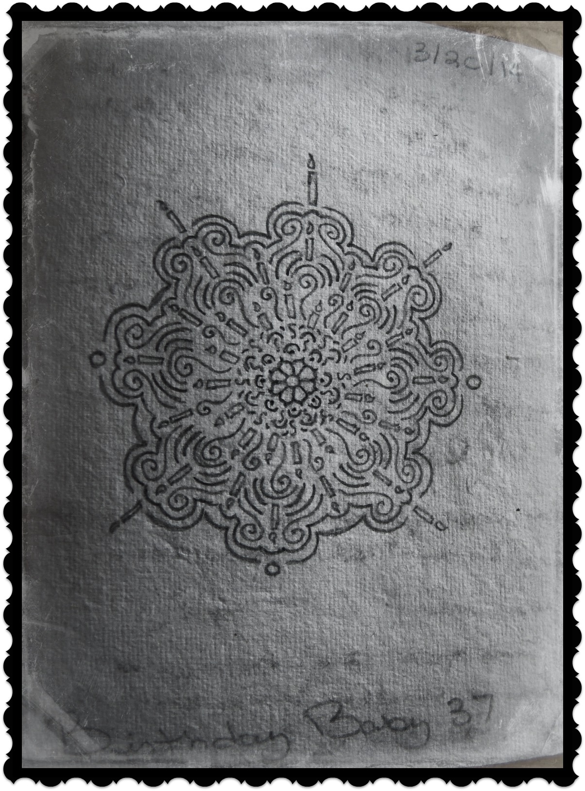 Birthday Baby 37 was a little present to myself on my birthday. I had only arrived to India 5 days before – was totally new to traveling and my only friend there was the yoga instructor I met at the ashram, Venkat. I remember being in a fairly jovial mood considering I was spending my birthday virtually alone, but did feel the need to draw myself this mandala with 37 candles. But I did get an unexpected birthday gift that day – that was the day the universe gave me Siggy, my soul sister. Venkat, Siggy and I celebrated my birthday together, and it turned out to be the most beautiful day. In India, they call you “birthday baby”, that’s how this mandala got its name… Venkat kept saying, “You birthday baby!”